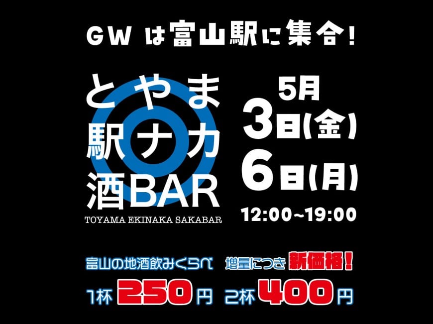 GW「とやま駅ナカ酒BAR」開催のお知らせ